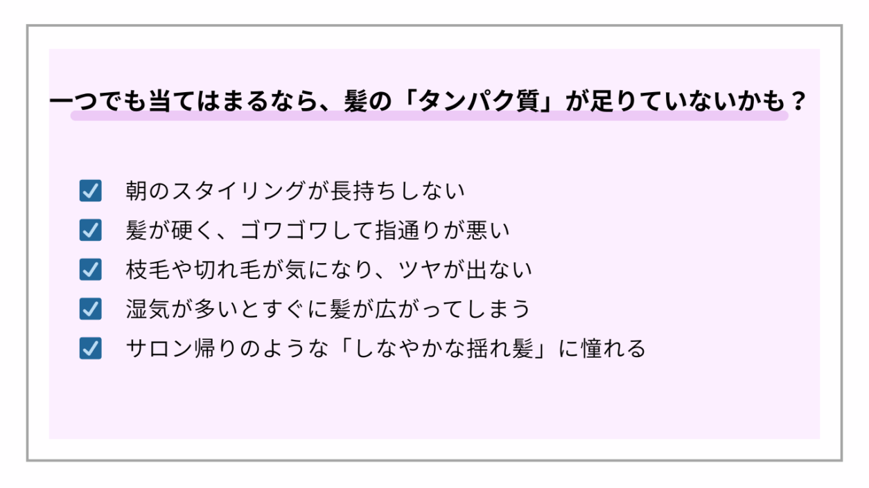 私たちの髪の約80%はタンパク質でできています。このシリーズは、そのタンパク質を補い、髪内部の密度を高めてくれるのが特徴。