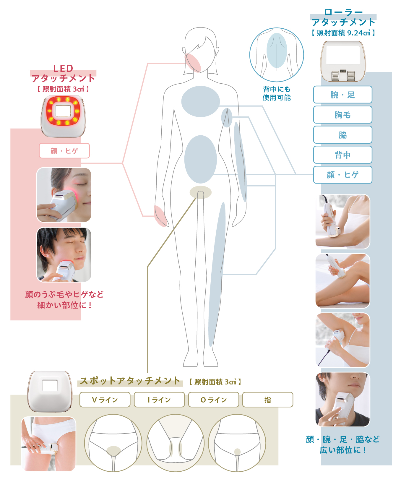 | 注意点・取り扱い | 【安全に関するご注意】 ※お肌にトラブルがある方はご使用にならないでください。 気分が悪くなったり部位に赤味、腫れ、かゆみなどの異常があらわれた場合は、ただちにご使用を中止し皮膚科など専門医にご相談ください。 本製品の分解、改造はしないでください。故障の原因になります。 幼児や小さなお子さんの手に届かない場所に保管して下さい。 高温多湿の場合での保管およびほこりや油などの多い場所でのご使用・保管はお避け下さい。 製品に重い物を乗せたり落下させるなど、強い衝撃を与えないでください。 |