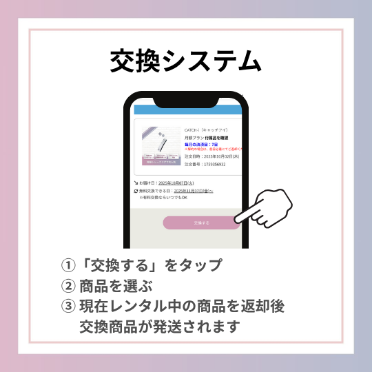 レンタル中の商品が気に入ったら、お手元の商品をそのまま買い取る「そのまま購入」が可能。 「そのまま購入」は定価の10%割引となります!